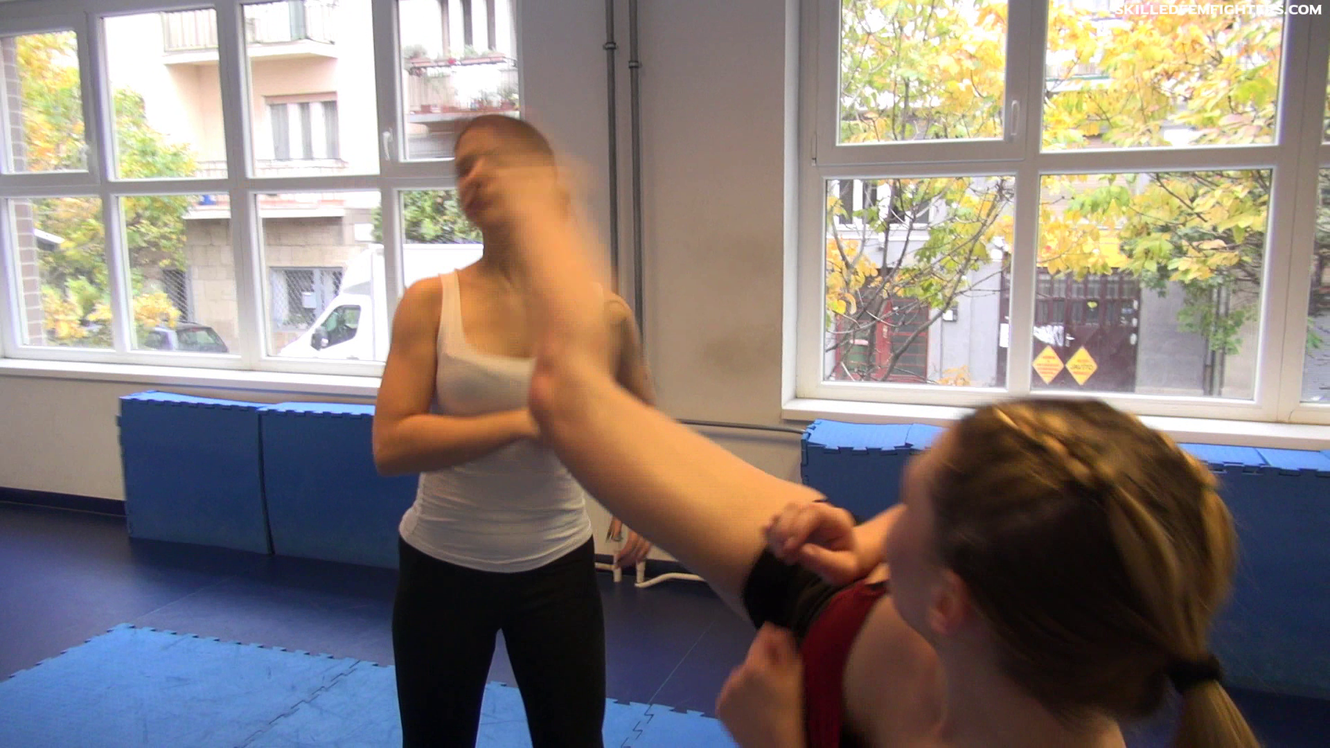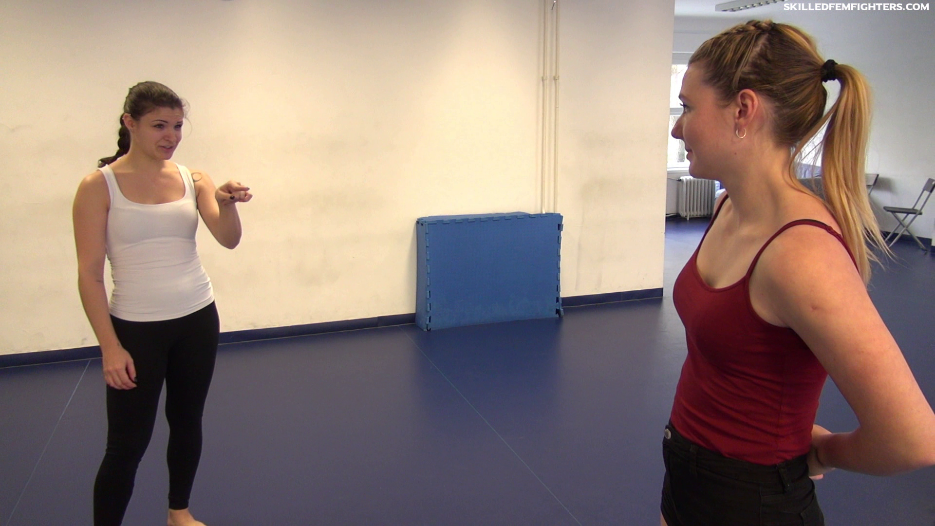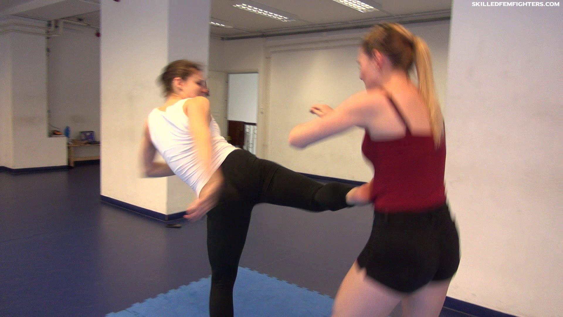 Include 2 versions of fight, each one with different last part of video – in one part is Flower winning, in other part Vivien. Include various kicks and punches, high kick choke (1st.version of video), stomping kick (2nd version of video), split punch, palm heel strike to nose…